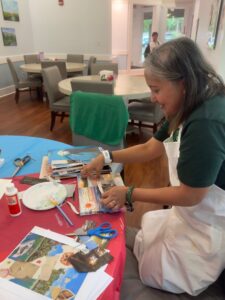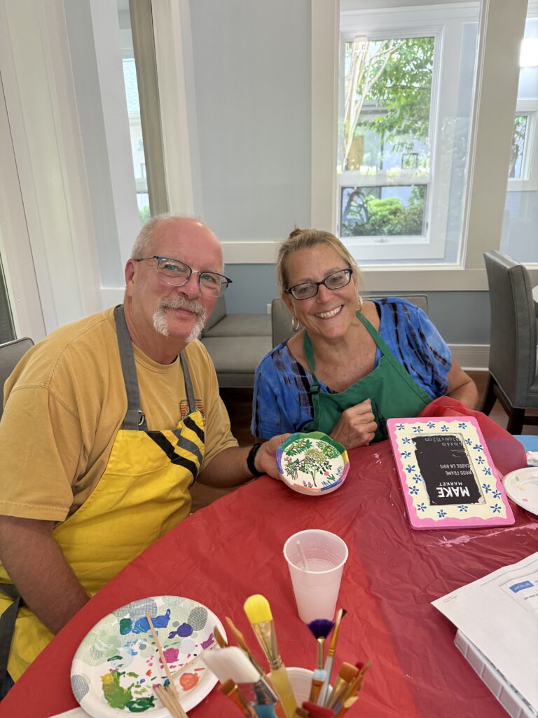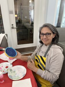 Through my work at the Caring House, I’ve met people from all over the country, each with a story that’s entirely their own. What connects them is their shared fight with cancer. Sitting with patients, I’ve gained insight into life, received unforgettable advice, and listened to some truly wild stories. Most of our conversations held around the art workshop table are filled with lighthearted anecdotes, but there’s always something unspoken lingering in the background. Cancer is what brought everyone here, it doesn’t pick and choose, and it affects people from all walks of life. And yet, within the Caring House community even the hardest conversations feel natural. There is safety in the community where honesty and vulnerability aren’t rare, but anticipated with open arms and open hearts. Many of the people who attend the art workshops are artists themselves staying at the Caring House as patients or caregivers. Learning about how art has helped them through their hardest moments has been incredibly inspiring and powerful. Others have shared how different outlets like farm work, or reading have carried them through. Every story has shown me new ways people find strength, and how creativity can emerge even in the most difficult time.