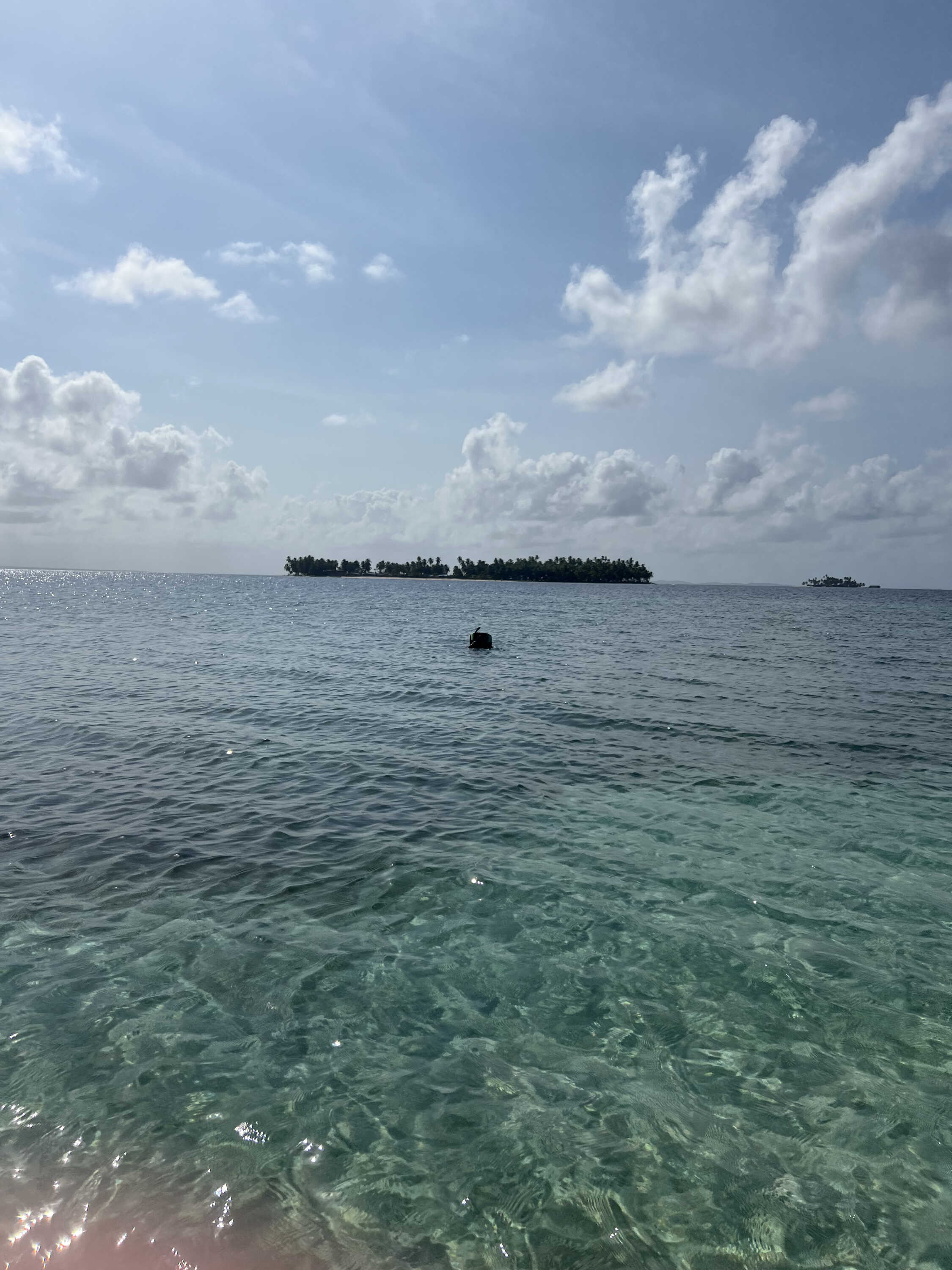 After the basketball game we explored a little bit more of the island and the community. We saw beautiful animals, such as cats, dogs, birds, and even a special appearance from an adorable little monkey. As we walked farther, we were greeting and being greeted eagerly by the curious, young kids. Something we learned that I found very interesting was that the kids grow up learning and speaking three different languages in school being English, Spanish and their native language, Dulegaya. They know Dulegaya from being taught in their home, and they take Spanish and English classes at school. In comparison to US schools where we tend to already know English and possibly learn a little bit of Spanish, I think this difference in learning and education systems is so intriguing to think about. After we left the island, we went to a separate island, which we learned was owned and shared by all 47 communities that live in this archipelago, and they all reserved the island especially for snorkeling. We all got geared up and made our way to the salty, refreshing water. We saw so many unique and beautiful species like fish and coral. A fish that stood out to me is this slightly transparent white fish, with a yellow dot on it. While I sat still on the shore, they willingly came toward me and started pecking at my feet! It was harmless but scary at first, but it was such a relaxing and new experience for me to have a fish so close and actually touching me. They were super-fast and agile and would just swim in circles around me. The water itself was very clear and free from trash and plastic, which was a surprising contrast from the island, which was littered with plastic bottles and jugs. In conclusion, my biggest takeaway from this experience was learning about the drastic differences in culture, education and environment here in Panama in comparison to the US, where we live and study.