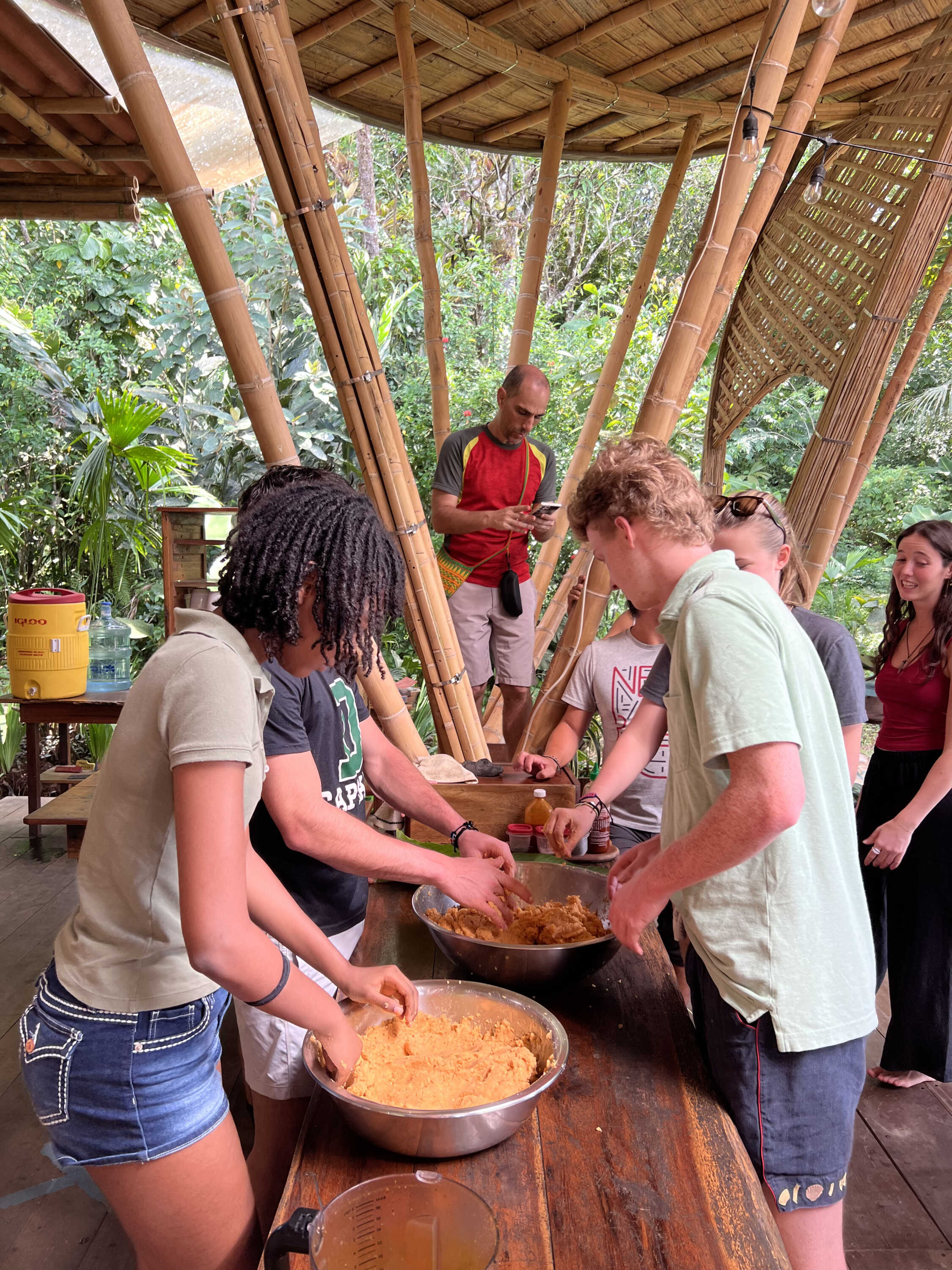 This March break, 12 students and two faculty members are traveling to Panama to engage with the complexity of research, communities, and conservation in the unique ecosystems of Panama. Please enjoy the blog post below from Yewon ’28 & Nyeema ’27 where they share their experience of trekking to a bamboo plantation, learning sustainable harvesting techniques, hiking through the jungle to Jungle Woods Falls, and enjoying a refreshing swim and games on their final night at the center before heading back to Panama City.