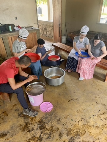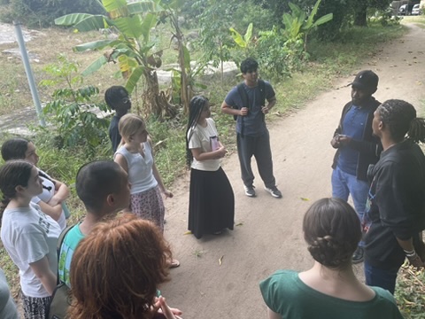 Following prayer, we shared a meal with the girls consisting of rice, beans, and cabbage. This simple, nourishing meal was an opportunity for each Deerfield student to find a seat surrounded by new faces and personalities. I joined Amelia ‘27, Stella ‘27, Winnie and Anna. The Mainspring girls shared their favorite colors, foods, and hopes for the future. After we all finished eating and talking, we taught them the classic elementary school game: concentration. Their eagerness to learn made us feel welcomed. Then, Winnie and Anna enticed us to try their favorite game. We all slapped the table while one of us repeated our name twice, and then someone else’s name at the table, who then repeated the ritual. Playing Winnie and Anna’s name game made all of or social anxieties melt away.