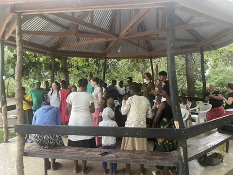 After our day of sunscreen, deet, meals at Papa’s, activity rotations – mine was teaching preschoolers shapes and colors, preparing soil and manure mixtures, and playing a basketball game – we headed to nightly prayer with the Mainsprings girls. Separated by the occasional prayer, this time mainly consists of singing. Despite our trouble understanding the Swahili verses, the melodies and rhythmic clapping of the girls drew us into the group. Our physical closeness and the girls’ naturally warm and kind demeanor made it feel easy to interact and gave us a sense of belonging.