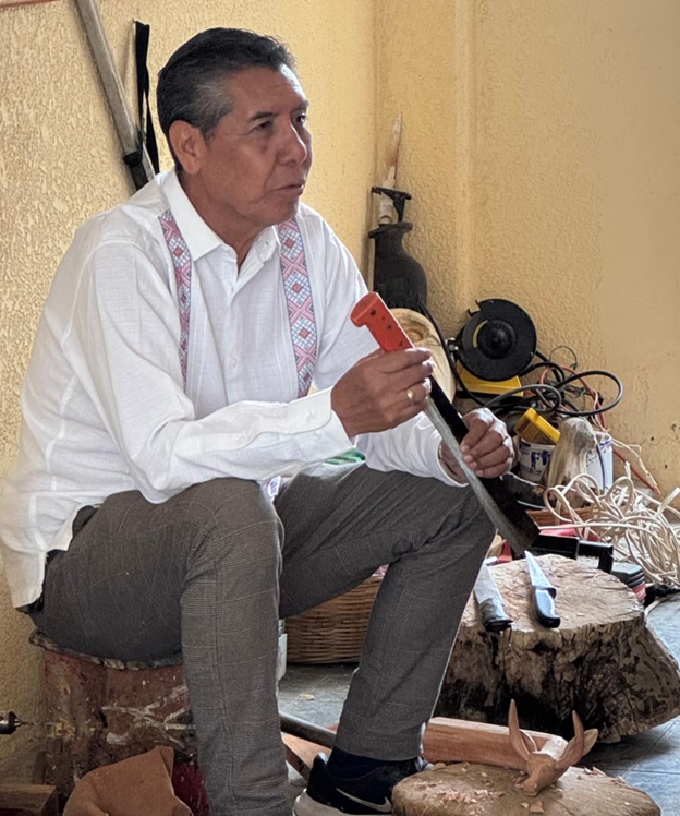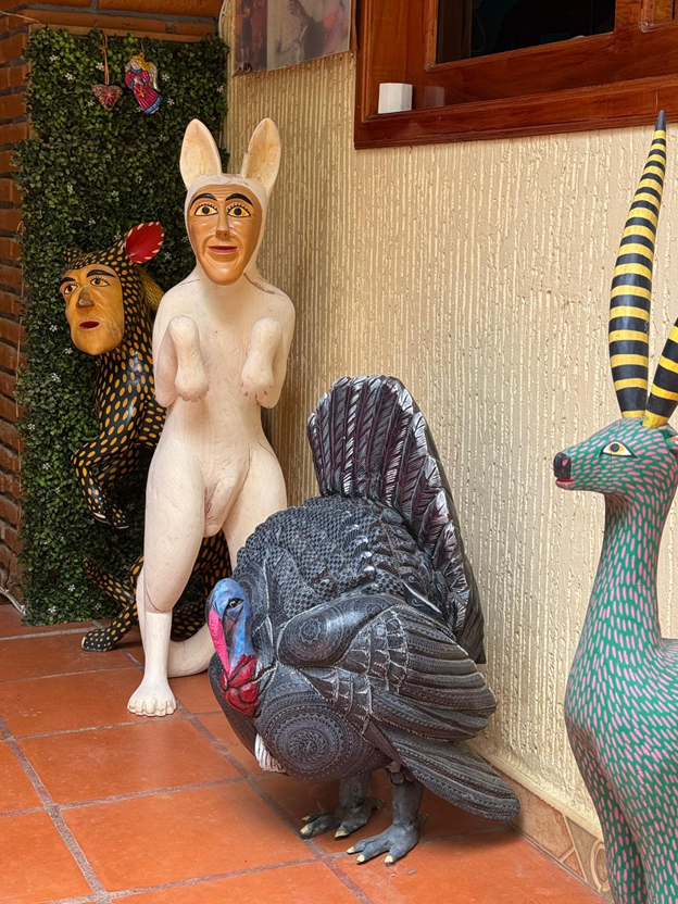 In the afternoon, we enjoyed delicious tortas (sandwiches) on our way to Arrazola Village, where we visited the home of the late Manuel Jiménez, creator of the first wooden “alebrijes”. Though Manuel Jiménez passed away in 2005, his son, Isaías, has been maintaining the home and mini-museum of his father’s artistic achievements. Isaías enthusiastically explained to us the story of how Señor Jiménez came to such artistic prominence–Señor Jiménez started working on a hacienda with his father at only eight years old, but quit at 12 years old to pursue his artistic dream, and worked countless jobs on his way to becoming a successful artist–and even when he finally managed to sell his first “alebrije”, he only earned two pesos. Of course, since then, Señor Jiménez became quite successful, and making alebrijes became a family tradition/business. Isaías also explained to us how he had turned down a total of five generous offers from foundations, both Mexican and foreign, who were seeking to buy the house from him in order to create their own museum about Manuel Jiménez–instead, Isaías prioritized owning the house and being able to pass on every part of his father’s legacy to his children.