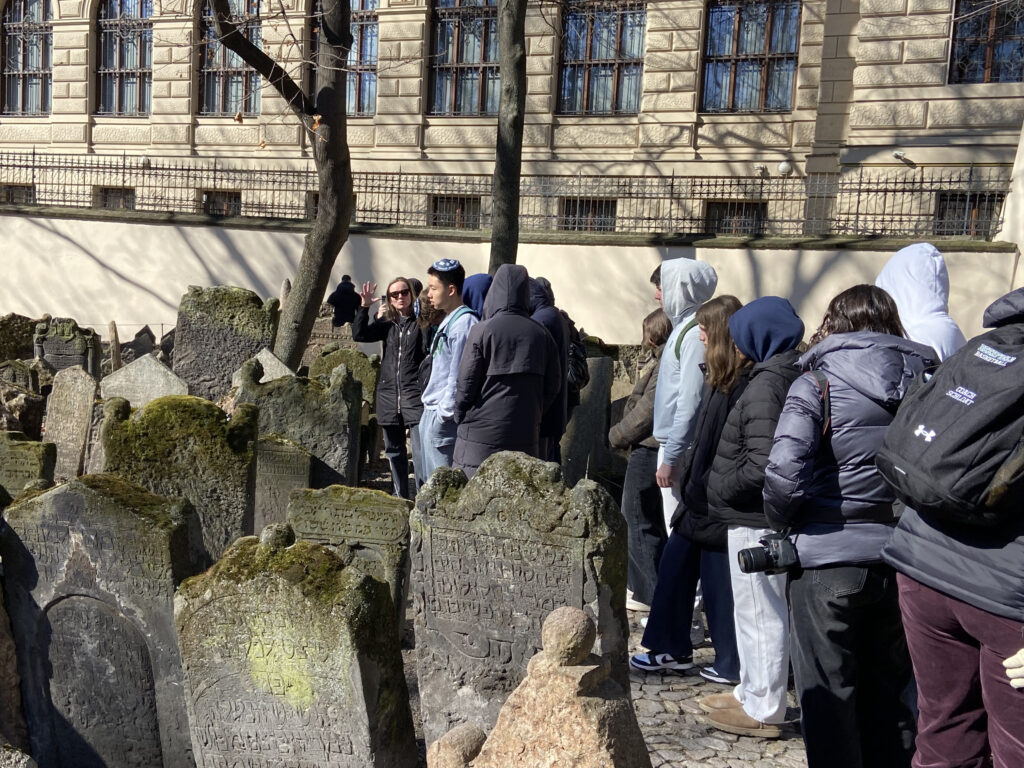 This March break, 11 students and two faculty members are traveling to Berlin, Prague, and Krakow to explore the idea of monuments and memorials and their role in public memory, and learn more about the Holocaust and how Germany, Czechoslovakia, and Poland responded in the late 20th century and early 21st century to the study of Holocaust memory, public art, and their fusion in contemporary life. Please enjoy the blog post below from Shahana ’26, John ’26, and Carter ’28 where they share about the group’s visit to Schindler’s Factory and beyond, reflecting on the power of individual choices during the Holocaust, the emotional weight of remembrance and resilience, and the enduring strength of Jewish burial traditions in the face of centuries of adversity.