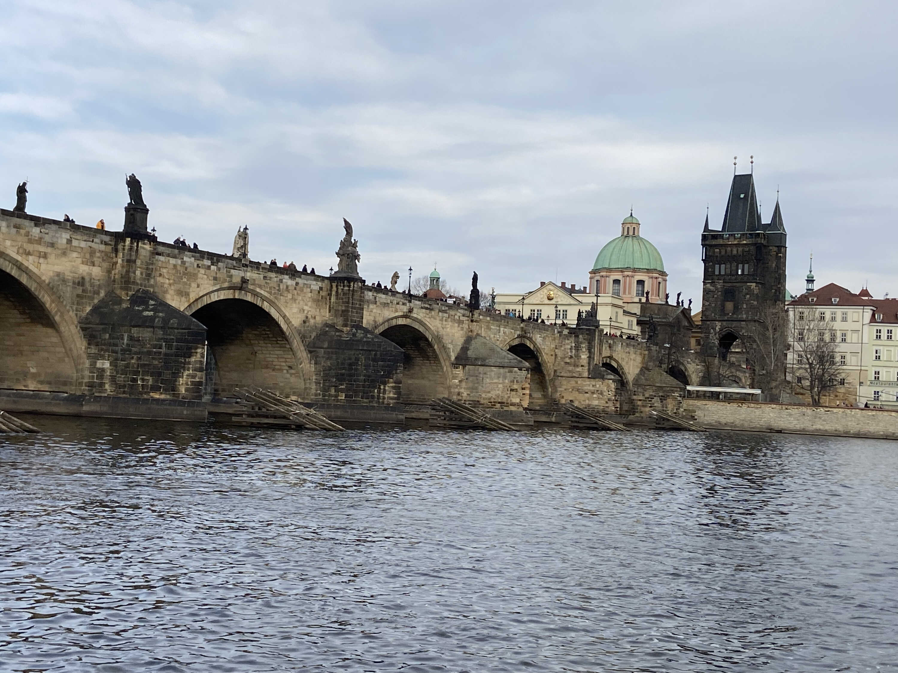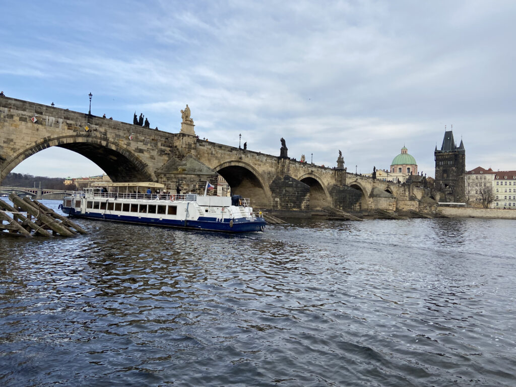 Our first stop in Prague was U Pinkasu, a restaurant where we ate quite a few potato dishes and celebrated a birthday. Afterward, we wandered the streets of Prague and stepped aboard a boat for a tour along the Vltava River—the longest river in the Czech Republic. Here, we saw the city from further away as well as some notable landmarks like the Petřín Tower, a loose imitation of the Eiffel Tower, and Prague Castle, one of the largest ancient castles in the world.