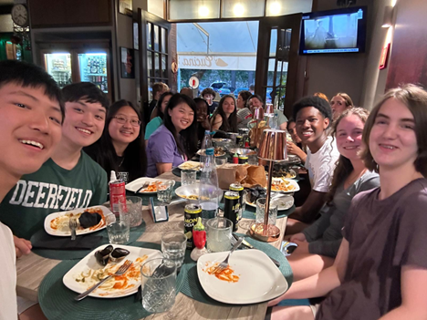 Antonio picked us up again to go to lunch. We split into groups to find places to eat in walking distance from the convent. After lunch, we had free time to nap, shop, and hang out with friends. For example, Sophia ‘26, Maeve ‘27, and Charlie ‘26 played card games in our air-conditioned rooms, after buying a bunch of snacks.
