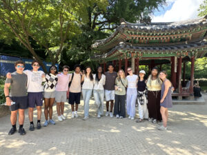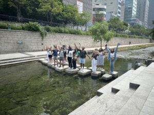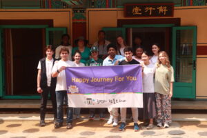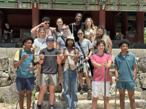 This summer, 13 Students and two faculty members are traveling to South Korea to study Korea’s remarkable economic journey in the post-war period, while strengthening their skills and deepening their understanding of leadership in action in the world. Please enjoy this first blog post below from Lucas ’28 and Charlotte ’26 where they share their first day in Seoul, exploring nature, innovation, K-pop, and Buddhism through a city tour, a startup visit, dance lessons, and a temple meditation.